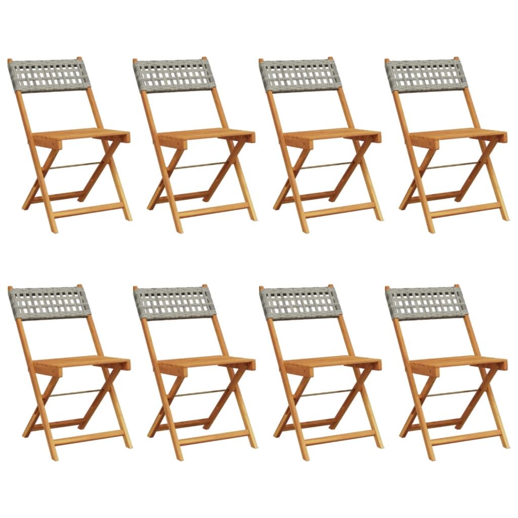 Relax and enjoy the outdoors in these comfortable folding garden chairs! Robust and stable: Solid acacia wood is known for its strength and durability. Its diverse colours and unique grain patterns give it an attractive appearance. With good stability and resistance to weathering, it is ideal for crafting indoor and outdoor furniture.Durable material: PE rattan, also known as poly rattan, is a strong, low-maintenance synthetic material that looks like natural rattan. It's lightweight, easy to clean, and commonly used for outdoor furniture due to its durability and weather-resistant properties.Easy to carry and store: The chair can be easily folded away when not in use, for easy storage and transportation.Practical design: The practical and flat wooden handrail allows you to rest your hands on it while enjoying your outdoor time.Various usages: The foldable chair has a wide range of uses and can easily meet your needs in any outdoor setting, such as gardens, patios, balconies, and so on. Good to know:To make sure your outdoor furniture stays beautiful, we recommend protecting it with a waterproof cover.