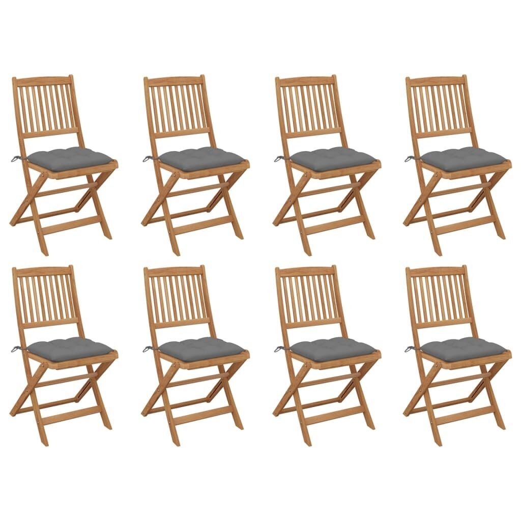 $171.03These solid acacia wood folding chairs with cushions provide a perfect place for you to relax and enjoy the sunshine in the garden or the patio. These garden chairs are made of solid acacia wood, making them sturdy and stable. Solid acacia wood has the strength to bear the weight and stand the wear and tear of time. So these outdoor chairs provide years of relaxation. Additionally, the chairs can be folded to save space when not in use. The included cushions add extra comfort. Each cushion features two sets of ropes to fix it on the chair tightly.