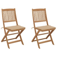 $163.55These solid acacia wood folding chairs with cushions provide a perfect place for you to relax and enjoy the sunshine in the garden or the patio. These garden chairs are made of solid acacia wood, making them sturdy and stable. Solid acacia wood has the strength to bear the weight and stand the wear and tear of time. So these outdoor chairs provide years of relaxation. Additionally, the chairs can be folded to save space when not in use. The included cushions add extra comfort. Each cushion features two sets of ropes to fix it on the chair tightly.