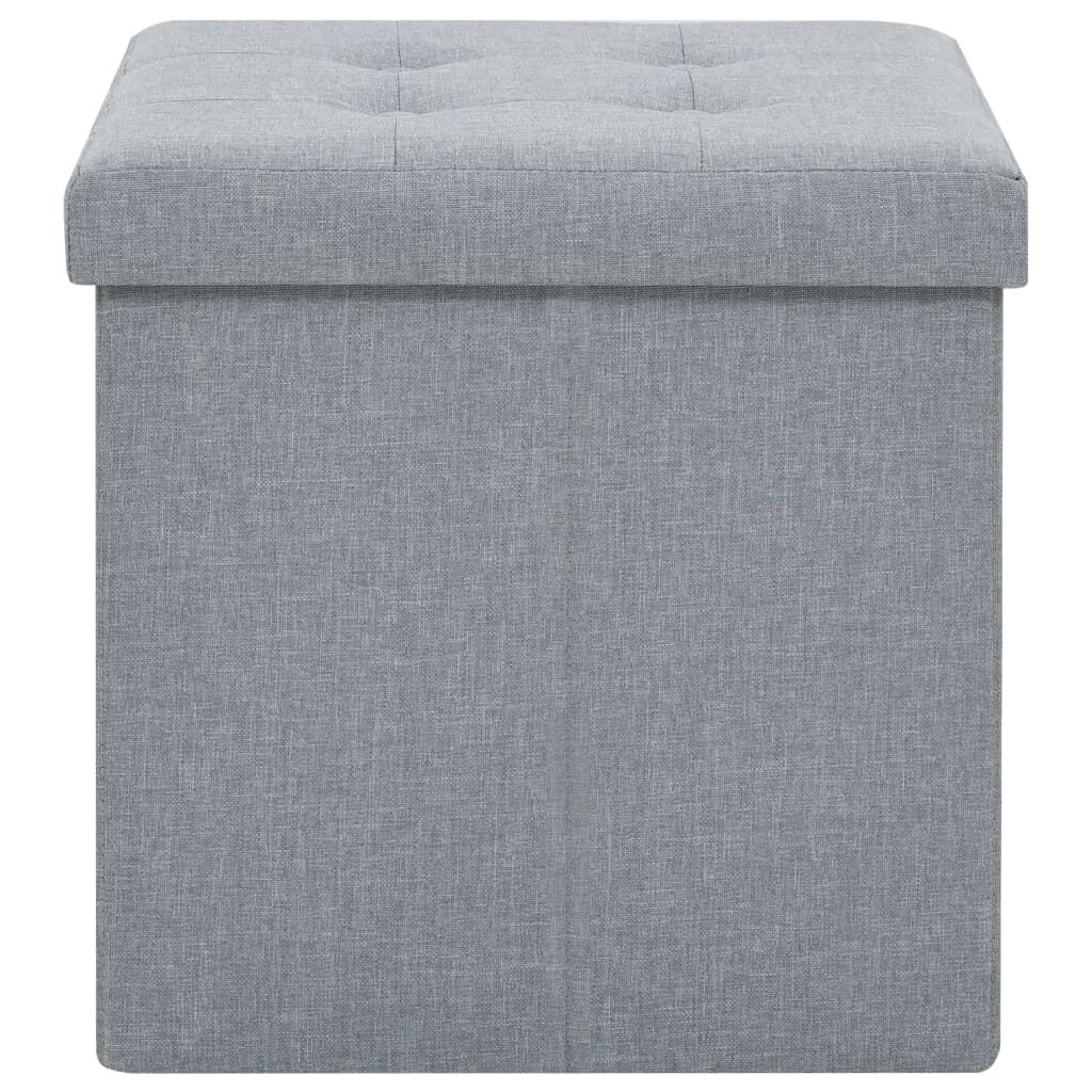 Our versatile and soft storage stools have a cosy design that will suit any interior decor. They can also be used as extra seats around your house. The storage stools are made of MDF and upholstered with faux linen, which is durable, stable and comfortable to sit. This grey colour will not easily show the stain or dust. They feature removable seat tops and have ample storage spaces for keeping a host of different items out of sight yet within reach. The chests can be folded to save space when not in use. The stools are easy to assemble. Delivery includes 2 storage stools.