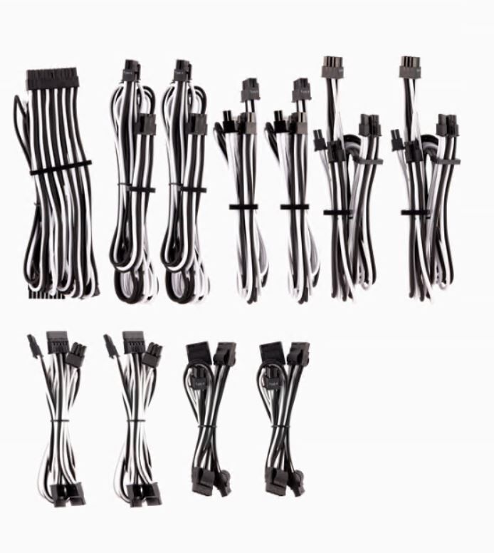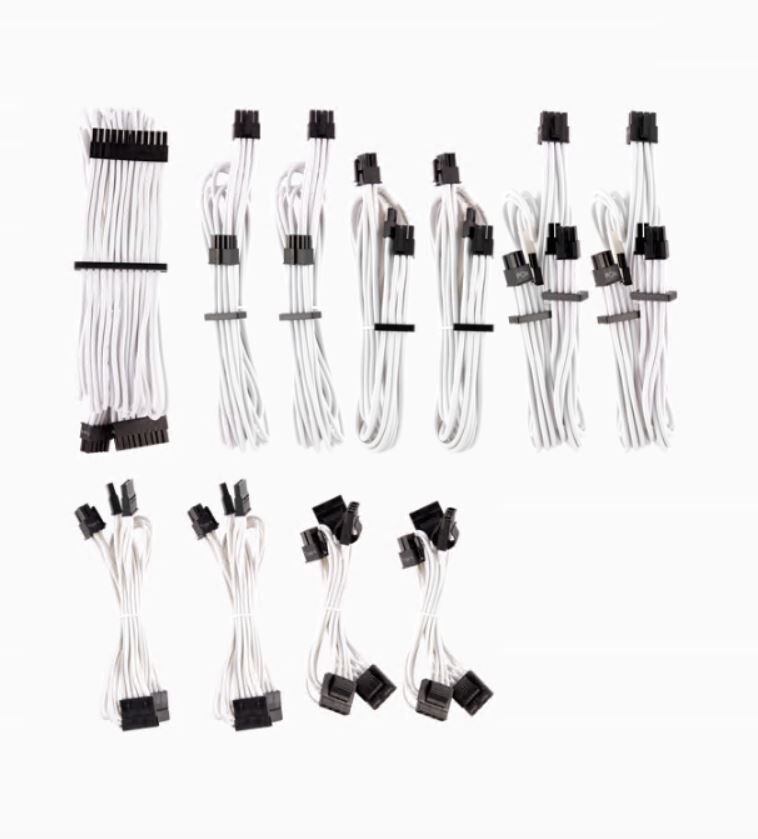 $222.77The CORSAIR Premium Individually Sleeved Type 4 Gen 4 Pro Kit includes everything you need to fully upgrade your PSU cables to flexible paracord sleeve, available in seven different colors and pattern Triple-layer mesh paracord sleeved cables provide easy cable routing and stylish aesthetics. Available in seven different colors and patterns Pre-installed 24-pin and 8-pin cable combs give your system a professional look in seconds. In-line capacitors on the ATX 24-pin, EPS12V and PCIe cables ensure clean voltage delivery and stable power. FULLY COMPATIBLE Guaranteed for use with all Type 4 CORSAIR PSUs. To see if your PSU is compatible, check out our PSU Cable Compatibility List.