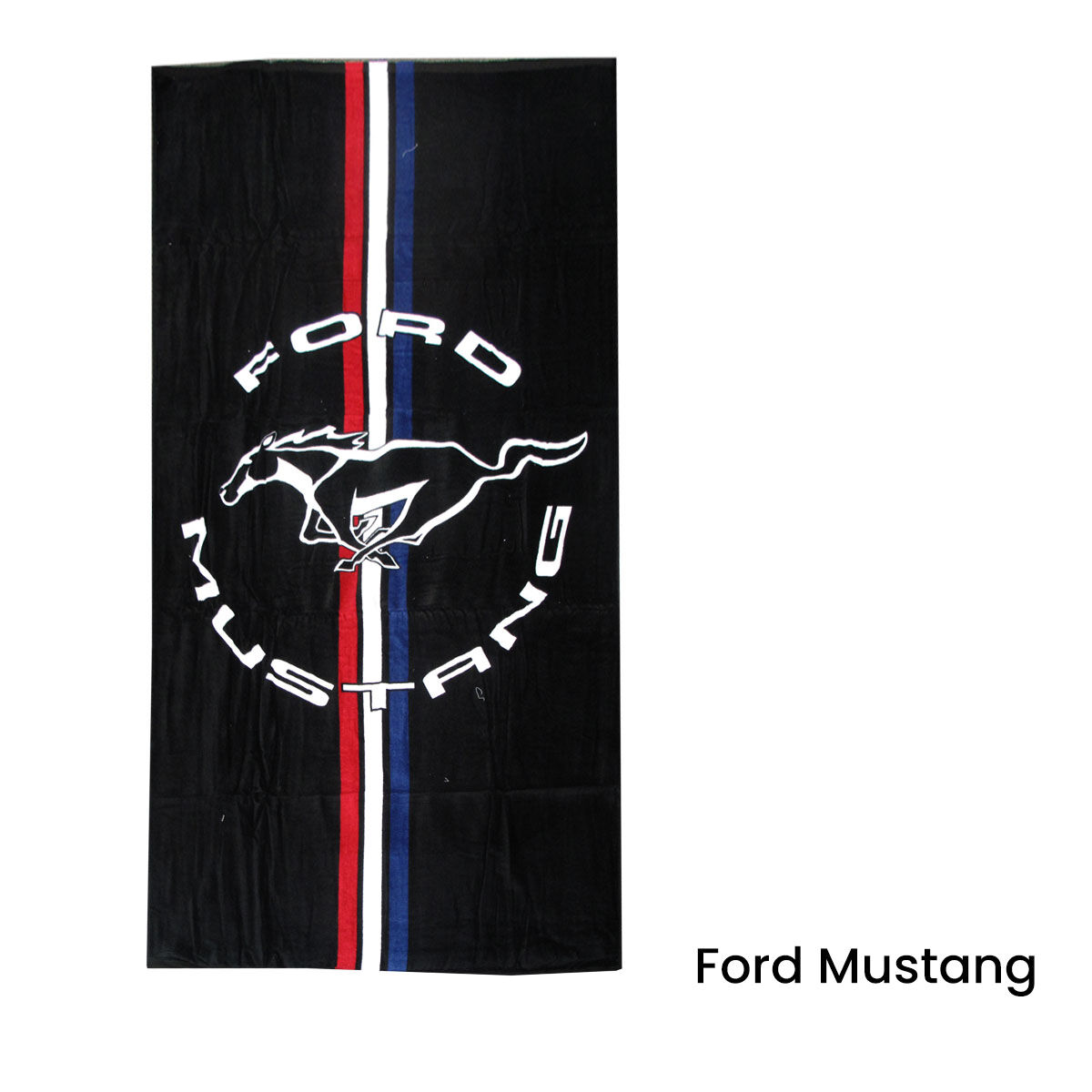 Wrap yourself in automotive nostalgia with the Ford Mustang Cars Printed 100% Cotton Beach Towel 75 x 150 cm. This towel is made from quality, absorbent cotton, perfect for drying off after a refreshing swim or a day at the beach. It feeatures a bold graphic of the iconic Ford Mustang logo and lettering printed in black, white, red, and blue colour hues, making it a must-have for any Mustang enthusiast. Whether you're a car lover or just looking for a stylish and functional beach accessory, this Licensed merchandise beach towel is sure to turn heads.