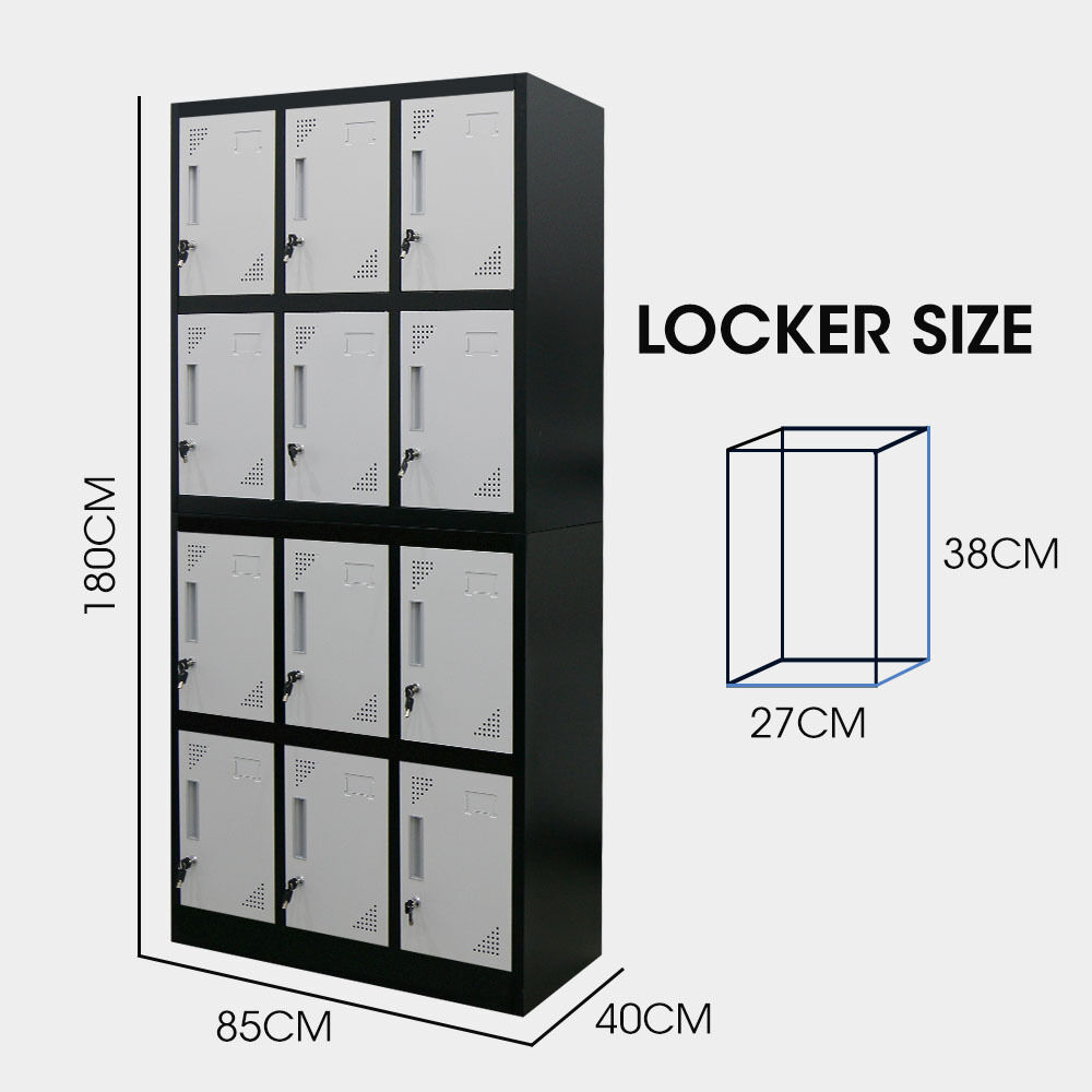 Built tough, the FORTIA™ 12 Door Locker has been constructed from solid cold rolled steel. Powder-coated in two-tone black and grey, this 12 Door Locker system combines sleek design with quality construction.