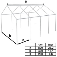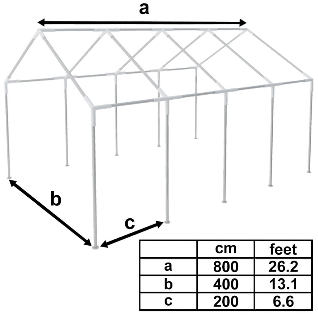 This steel frame is meant for use with our marquee cover (8 x 4 m) which can be used for all your outdoor events. This set contains everything you need for the frame, including the stakes and ties! This frame is manufactured from steel and thus highly durable. Note: This is the tent frame only. You can find a compatible tent cover in different colours in our shop to form a complete marquee.
