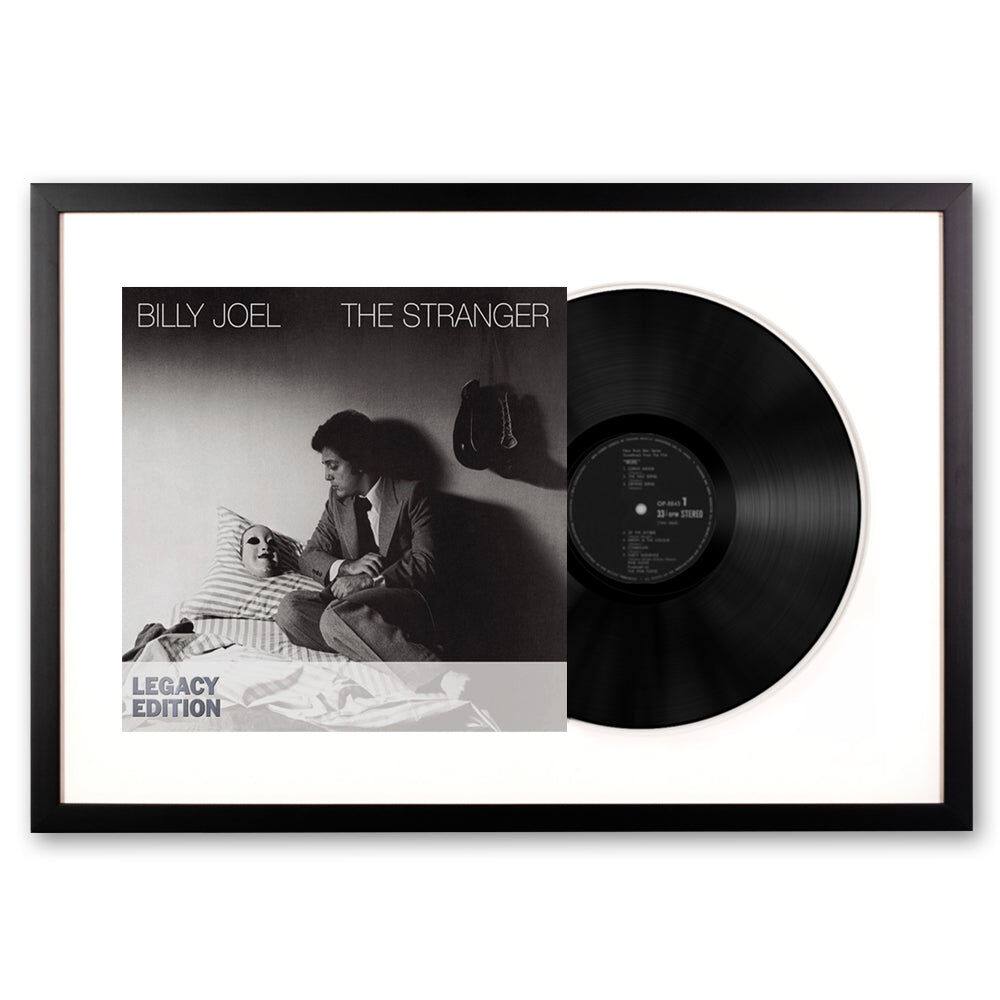 Framed Billy Joel the Stranger Vinyl Album Art - We are eager to honour and showcase this art form by framing the actual original artist's vinyl cover and vinyl record themselves. This record is framed using all wood profiles, archival matting, and UV-filtering non-glare acrylic. The cover artwork is presented in full, while the actual vinyl peeks out of the sleeve. The outer dimensions of each frame are 75 cm x 47.5 cm.