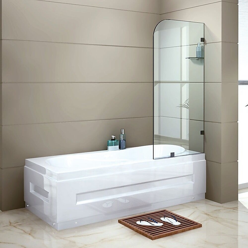 This gleaming shower door measures a generous 700 x 1450mm and features 10mm Australian standard tempered glass. The rounded-top panel is not only attractive, it is safe to use for all members of the family.The sturdy hardware on this shower door ensures safety and dependability. The elegant patch hardware add to the panels aesthetic appeal.