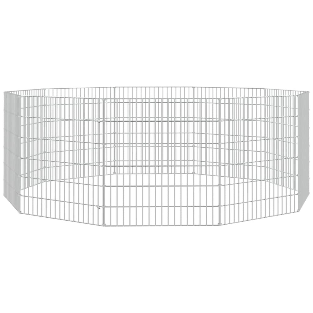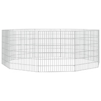 This animal enclosure provides a spacious and safe enclosed space for your lovely pets to exercise, play and rest. Sturdy material: This rabbit hutch is made of galvanised iron, sturdy and durable, ensuring years of use with little maintenance.DIY assembly: The rabbit hutch features multiple panels, so you can assemble it to any shape and size you want.Spacious room: The animal run cage offers plenty of place for your pets to play and rest while staying safe within the boundaries