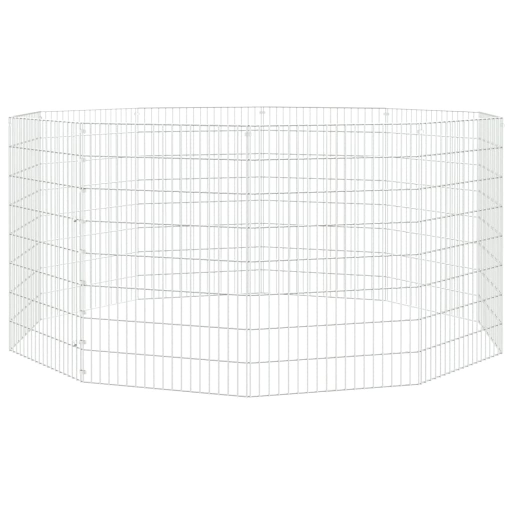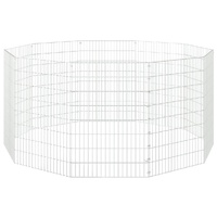 This animal enclosure provides a spacious and safe enclosed space for your lovely pets to exercise, play and rest. Sturdy material: This rabbit hutch is made of galvanised iron, sturdy and durable, ensuring years of use with little maintenance.DIY assembly: The rabbit hutch features multiple panels, so you can assemble it to any shape and size you want.Spacious room: The animal run cage offers plenty of place for your pets to play and rest while staying safe within the boundaries
