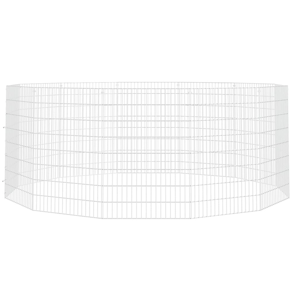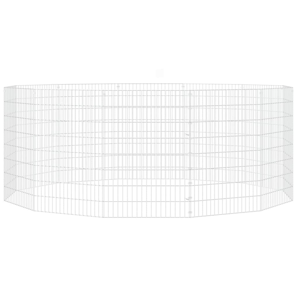 This animal enclosure provides a spacious and safe enclosed space for your lovely pets to exercise, play and rest. Sturdy material: This rabbit hutch is made of galvanised iron, sturdy and durable, ensuring years of use with little maintenance.DIY assembly: The rabbit hutch features multiple panels, so you can assemble it to any shape and size you want.Spacious room: The animal run cage offers plenty of place for your pets to play and rest while staying safe within the boundaries