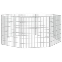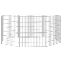 This animal enclosure provides a spacious and safe enclosed space for your lovely pets to exercise, play and rest. Sturdy material: This rabbit hutch is made of galvanised iron, sturdy and durable, ensuring years of use with little maintenance.DIY assembly: The rabbit hutch features multiple panels, so you can assemble it to any shape and size you want.Spacious room: The animal run cage offers plenty of place for your pets to play and rest while staying safe within the boundaries
