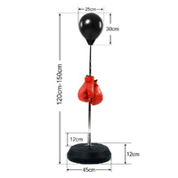 This Free-Standing Boxing Set comes pre-packaged with a punching ball on a sturdy stand, pair of boxing gloves, air pump and spanner. With easy assembly, this boxing set features a durable PU punching ball, sprung chrome bar, 12cm tension spring and a steel stand mounted on a sturdy base. Simply fill the base with sand or water for added stability and adjust the height between 121cm-145cm to get started.
