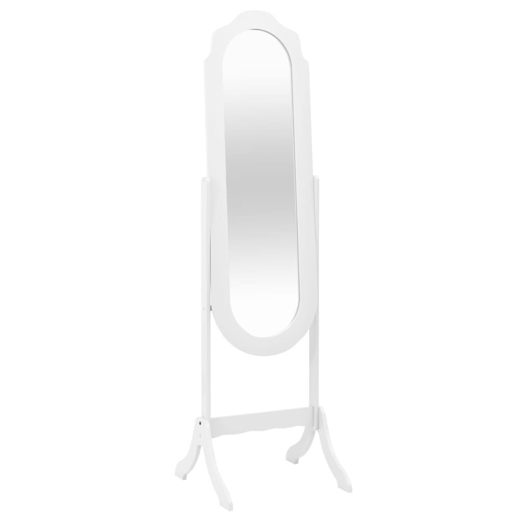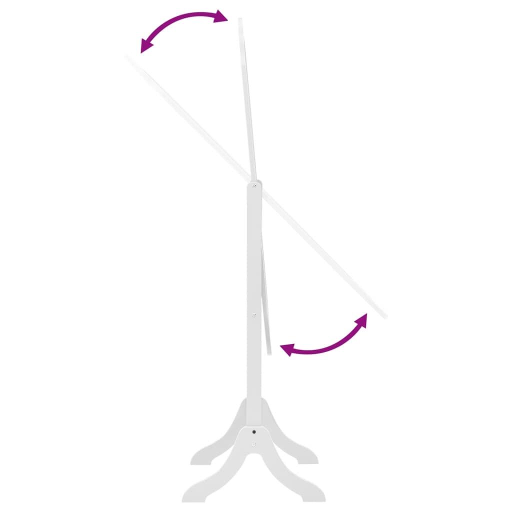 This free-standing mirror is sure to be a fancy point for your home decor. Durable material: The frame of the mirror is made of durable engineered wood. The engineered wood is of exceptional quality with a smooth surface and features strength, stability and resistance to moisture.Various angles: The make up mirror could be tilted at various angles as per your desire to get a full-length look.Clear image: The glass mirror face provides a clear image. So, you can enjoy a beautiful and natural reflection when standing in front of it.Multiple uses: You can use the vanity mirror to decorate your bedroom, wardrobe, hallway, living room, bathroom, and any other place you need to add brilliance.