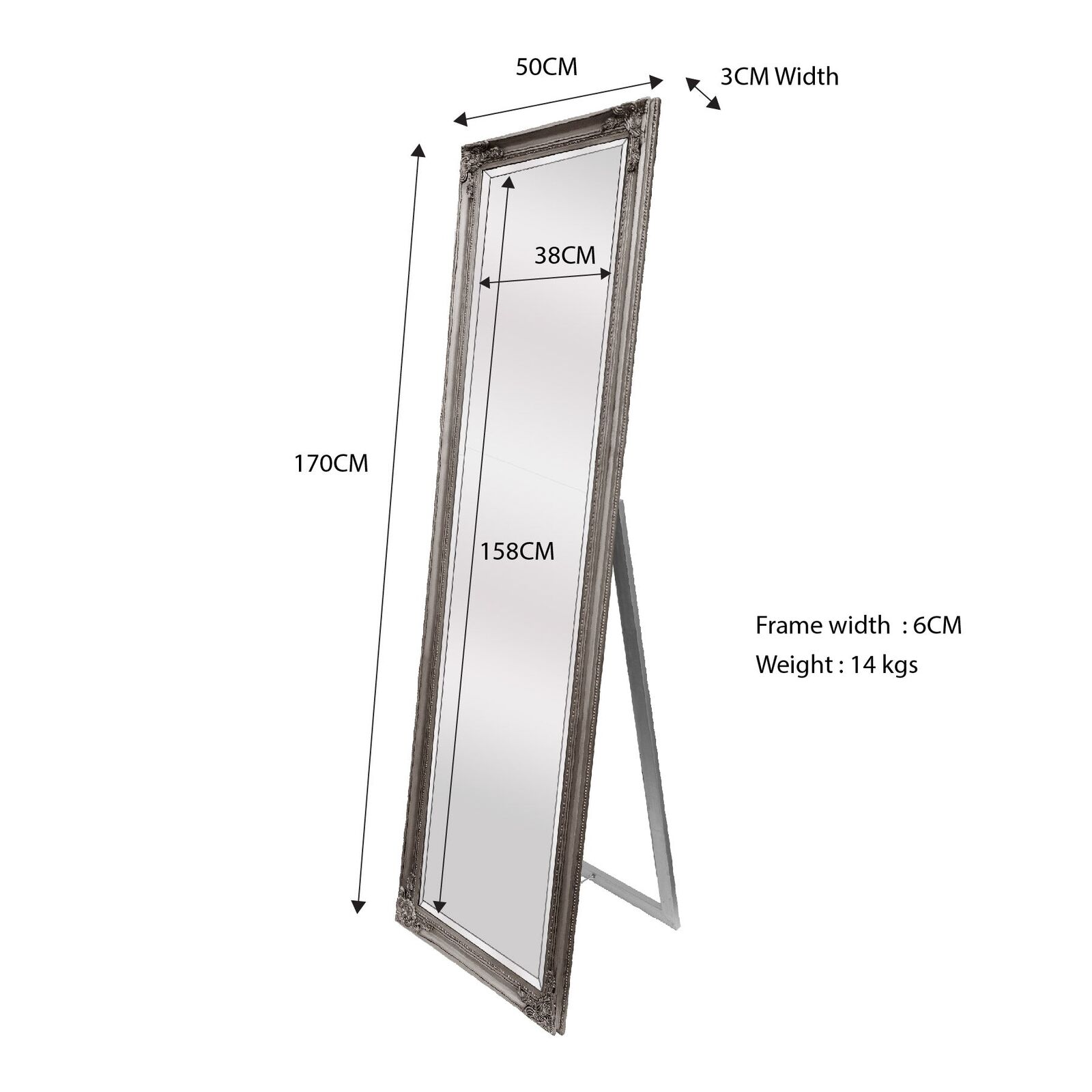 Total Mirror : Length 50 CM x Height 170 CM x Width 3cm