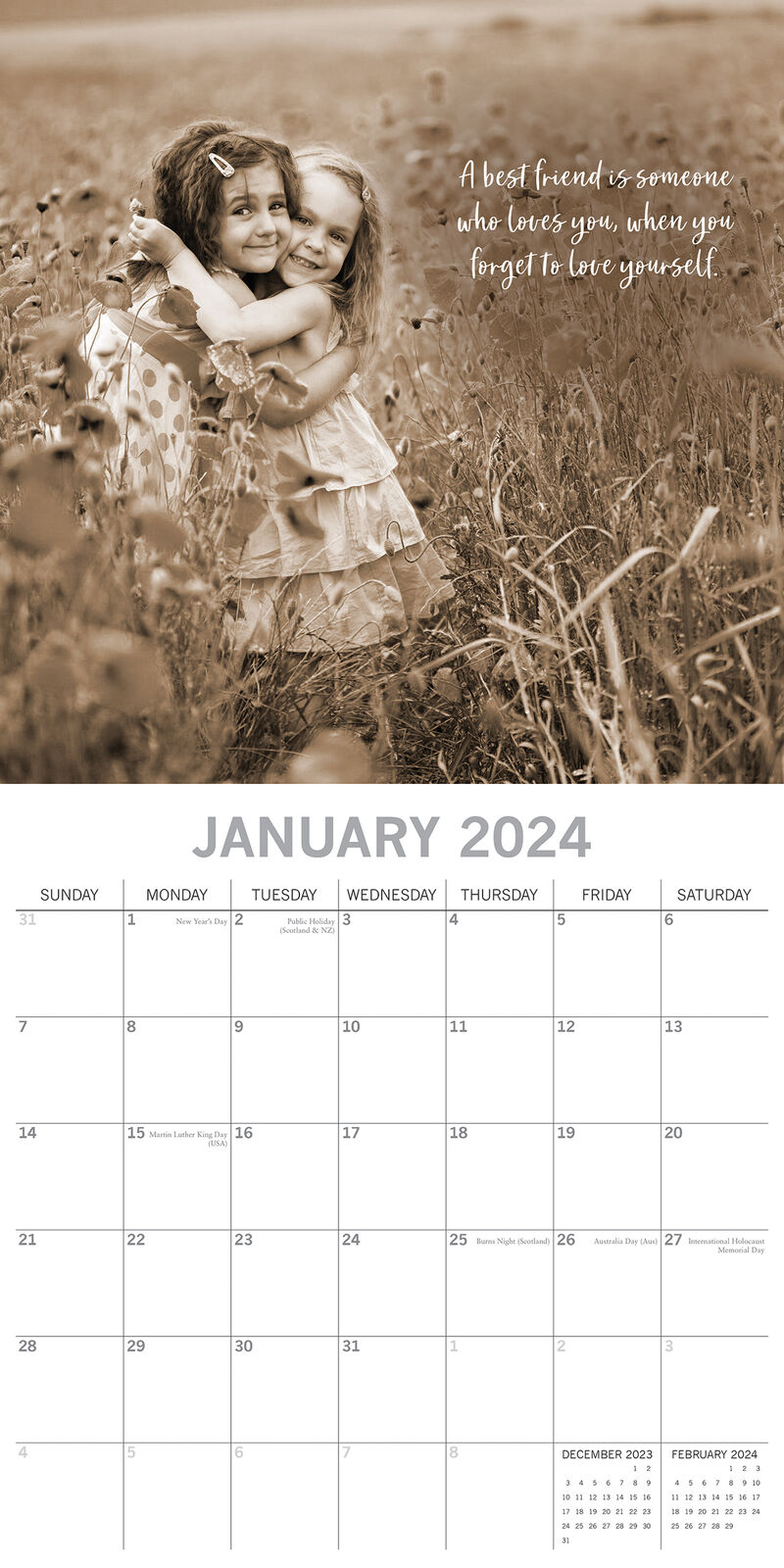 Friendship - 2024 Square Wall Calendar 16 Months Lifestyle Planner New Year Gift