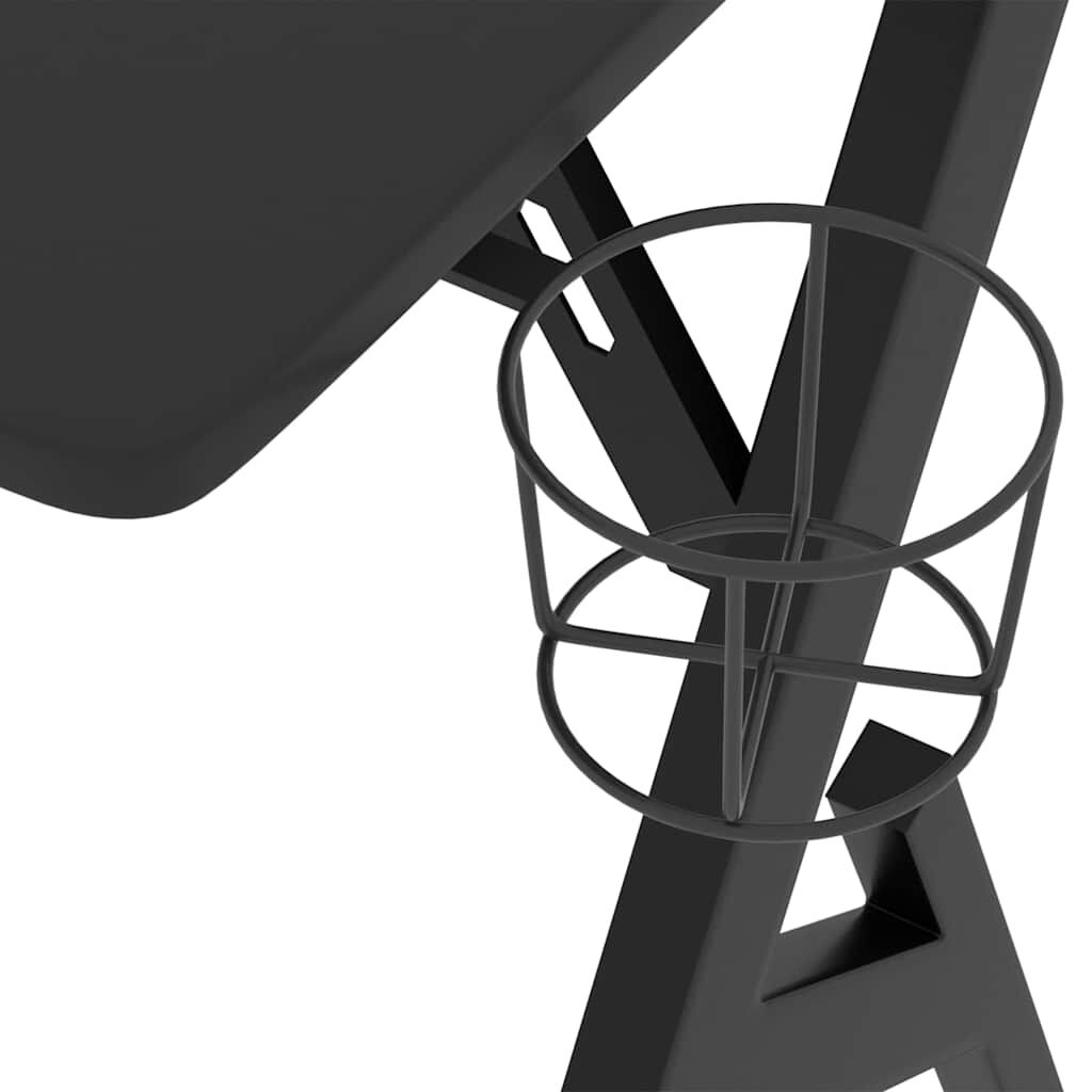 This gaming desk guarantees your concentration and comfort while playing or working. The streamlined ergonomic design offers a perfect gaming posture, helping you game longer and stronger! This computer desk includes an earphone rack and controller rack, which can hold your earphones right at your fingertips. It also has a cup holder to keep your drinks. It provides massive space for your gaming monitors, PC, gaming keyboards and other gaming gear. Additionally, the iron Y-shape leg design makes it stable and can stand up to any serious gamer??s demands.