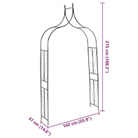This garden arch provides an easy and attractive way to add an elegant feature to your garden. You can also use it as an archway for climbing plants or decorate it with flowers or balloons for weddings and other special events. Constructed of iron tubing and coated in weather-resistant black epoxy, this arbour is sturdy and easy to maintain. This garden arch is also easy to assemble.