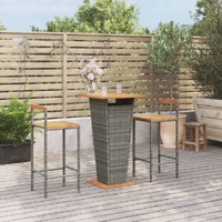 This trendy garden bar set, combining both style and function, is surely meant to be the centrepiece of your garden, patio, and any other living space. Weather-resistant material: PE rattan, also known as poly rattan, is weather resistant and easy to clean. It remains beautiful on the outside for a long period of time. It offers great quality, convenience and an aesthetic look.Comfortable seating: The bar chair is designed with a built-in footrest to offer you a comfortable seating experience. The wooden seat and backrest also give the chair a natural and pleasant look while ensuring stability.Wooden tabletop: The wooden tabletop with slatted design is ideal for placing drinks, food, and so on.Sturdy and stable frame: The powder-coated steel frames make the pub set sturdy and stable for daily outdoor use.Wide applications: The bar table and chairs, with its remarkable design, create a pleasant overall appearance that integrates effortlessly into any environment. Good to know:To make assembly as easy as possible, each product is delivered with a manual. Note:To make sure your outdoor furniture stays beautiful, we recommend protecting it with a waterproof cover.