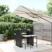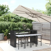 $426.75This trendy garden bar set, combining both style and function, is surely meant to be the centrepiece of your garden, patio, and any other living space. Weather-resistant material: PE rattan, also known as poly rattan, is weather resistant and easy to clean. It remains beautiful on the outside for a long period of time. It offers great quality, convenience and an aesthetic look.Comfortable seating: The bar stool is designed with a built-in footrest to offer you a comfortable seating experience. The thickly padded seat cushion provides ultimate comfort during your sitting time.Tempered glass tabletop: The tabletop is made of tempered glass, making it easy to clean. Additionally, it offers excellent support for holding your drinks, snacks, and your favourite decorations.Sturdy and stable frame: The powder-coated steel frames make the pub set sturdy and stable for daily outdoor use.Wide applications: The bar table and stool, with its remarkable design, creates a pleasant overall appearance that integrates effortlessly into any environment. Good to know:To make assembly as easy as possible, each product is delivered with a manual.Note:To make sure your outdoor furniture stays beautiful, we recommend protecting it with a waterproof cover.