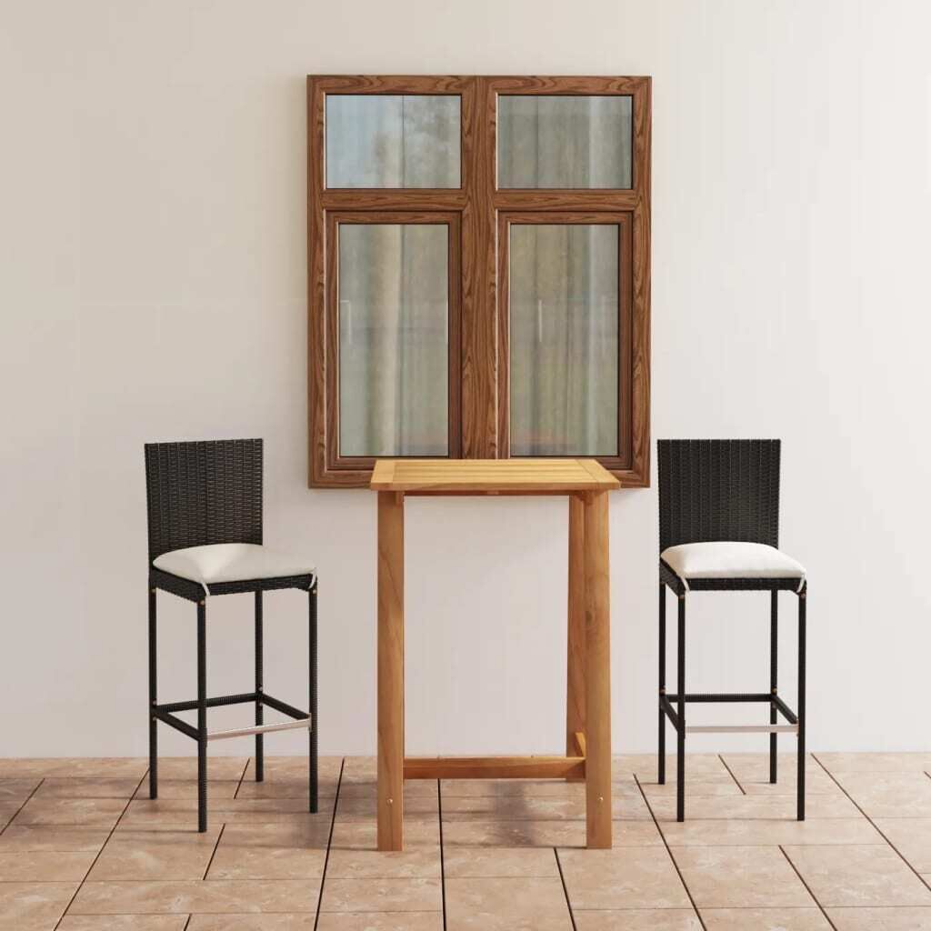 $329.93This garden bar set has an elegant design and is the focal point of your garden, patio or terrace. The table is made of solid acacia wood with an oil finish, which makes it stable, durable and easy to maintain. Featuring a powder-coated steel frame covered with weather-resistant PE rattan, the bar stool is sturdy and easy to clean. The thick, removable seat cushions are highly comfortable. The cushion covers with zippers can be easily removed and washed. Note: We recommend covering the set during rain, snow and frost.