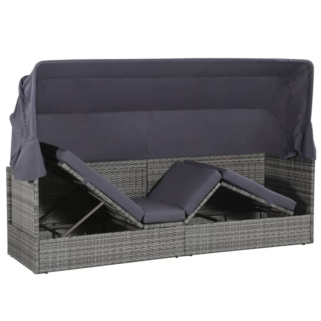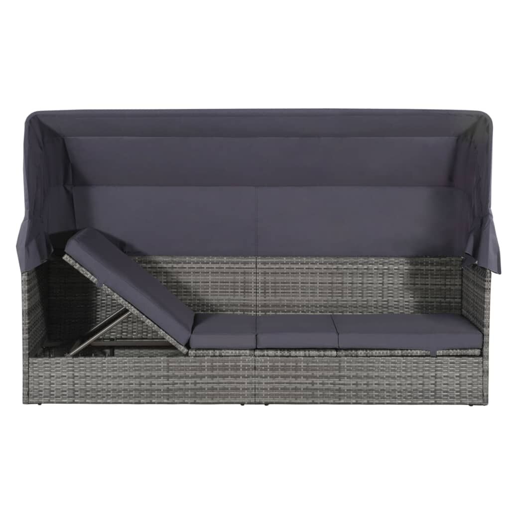 This lounge bed will be an ideal hideaway for relaxing and enjoying your leisure time near the swimming pool, in your garden or on your patio. The sun lounger is made of water-resistant PE rattan, which is easy to clean, stain resistant, hardwearing and suitable for daily use. The sunroof also protects you from the hot sunlight when you read or relax in summer days. The lying area can be adjusted in various settings for the most comfortable position. The steel frame makes this sunlounger sturdy and stable. It is also delivered with a highly comfortable, thickly-padded seat cushion for the ultimate comfort. The low-maintenance polyester cover can also be removed and washed. Delivery includes a lounge bed with canopy and a large seat cushion. Please note: We recommend covering the lounge bed during rain, snow and frost for its best service to last.