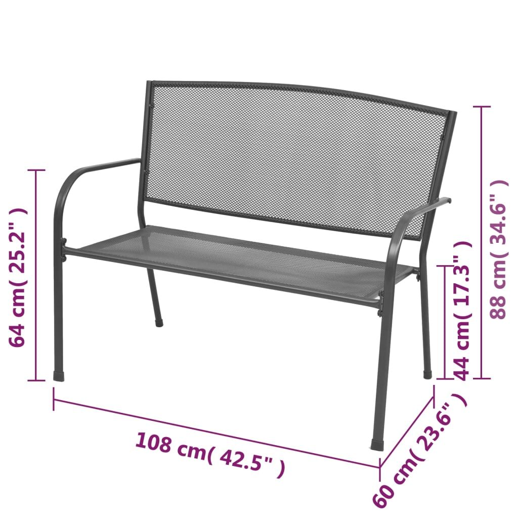 This high-quality bench has a stylish mesh design, and will add a touch of contemporary style to your patio, garden or living room. When you invite guests over, they will marvel at the design of this industrial-style bench. The bench is made of sturdy steel that has been given an e-coating and powder coating. The metal garden bench is extra strong, durable, and weather and rust resistant. It is also very easy to clean and maintain thanks to the finish. The mesh design gives the bench an elegant look. Sit back and enjoy your leisure time in comfort with this stylish bench! Assembly is easy.