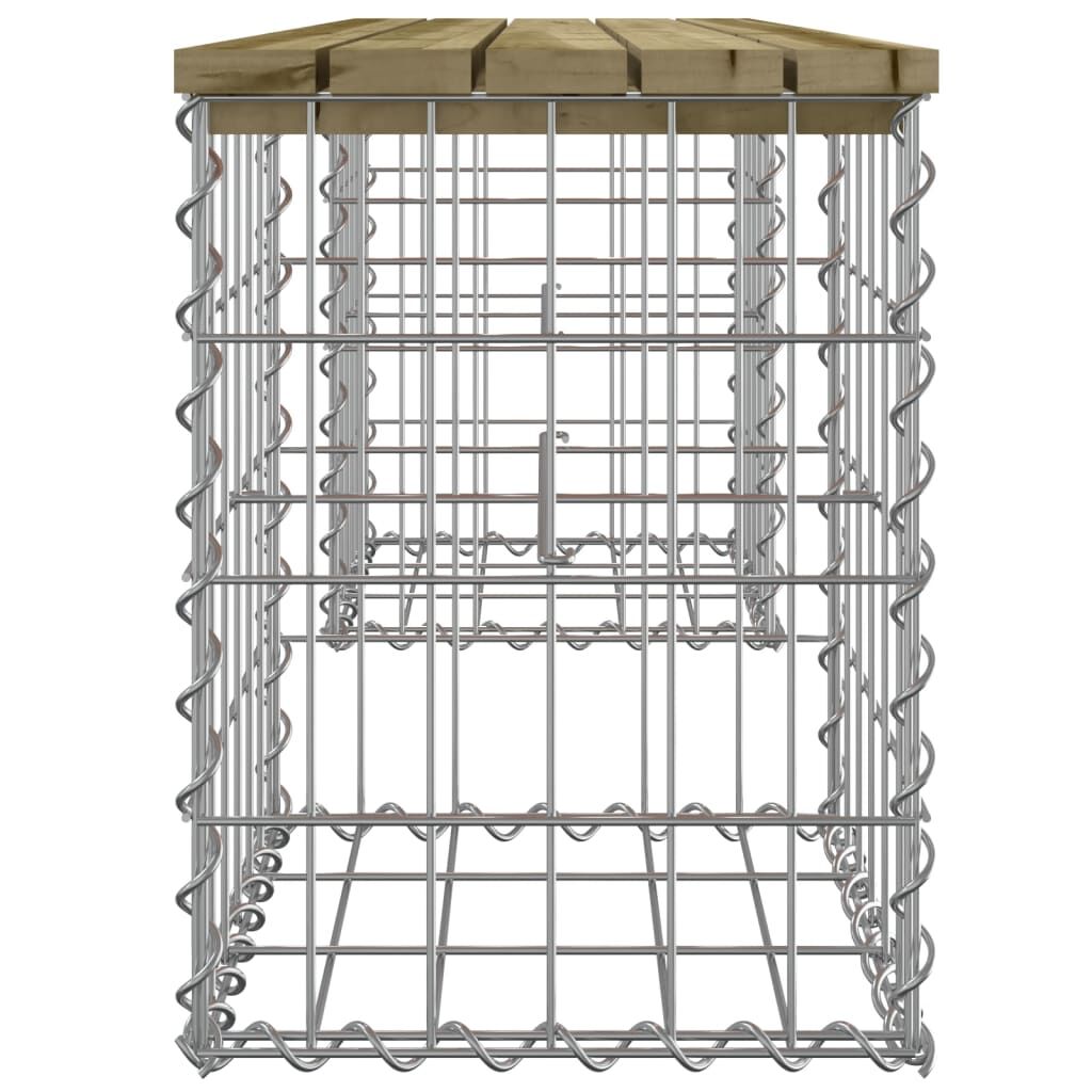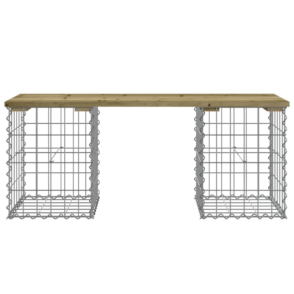 Create your own outdoor seating space with this garden bench! This garden bench will be a real eye-catcher in your outdoor living space. Impregnated wood: This top of the garden seat is made of vacuum pressure impregnated pinewood for durability. Solid pine wood is a beautiful natural material. It has a straight grain, and the knots give the material its signature, rustic look. Impregnation is a preservation process that is carried out by using autoclaves. The pressure-treatment increases resistance to decay and weather.Sturdy and stable base: This outdoor bench features a galvanised steel gabion basket base that is designed to be filled with rocks and gravels for additional beauty. The mesh grid of gabion basket is welded with transverse and longitudinal wires at every intersection for extra stability.Compact design: This garden bench seat is perfect for a limited space thanks to its narrow and compact design.Wide range of uses: This park bench is suitable for gardens, backyards, patio spaces, secret corner locations and more. Good to know:To make sure your outdoor furniture stays beautiful, we recommend protecting it with a waterproof cover.