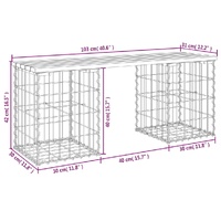 Create your own outdoor seating space with this garden bench! This garden bench will be a real eye-catcher in your outdoor living space. Solid pinewood: This top of the garden seat is made of solid pinewood for durability. Solid pine wood is a beautiful natural material. It has a straight grain, and the knots give the material its signature, rustic look.Sturdy and stable base: This outdoor bench features a galvanised steel gabion basket base that is designed to be filled with rocks and gravels for additional beauty. The mesh grid of gabion basket is welded with transverse and longitudinal wires at every intersection for extra stability.Compact design: This garden bench seat is perfect for a limited space thanks to its narrow and compact design.Wide range of uses: This park bench is suitable for gardens, backyards, patio spaces, secret corner locations and more. Good to know:To make sure your outdoor furniture stays beautiful, we recommend protecting it with a waterproof cover.