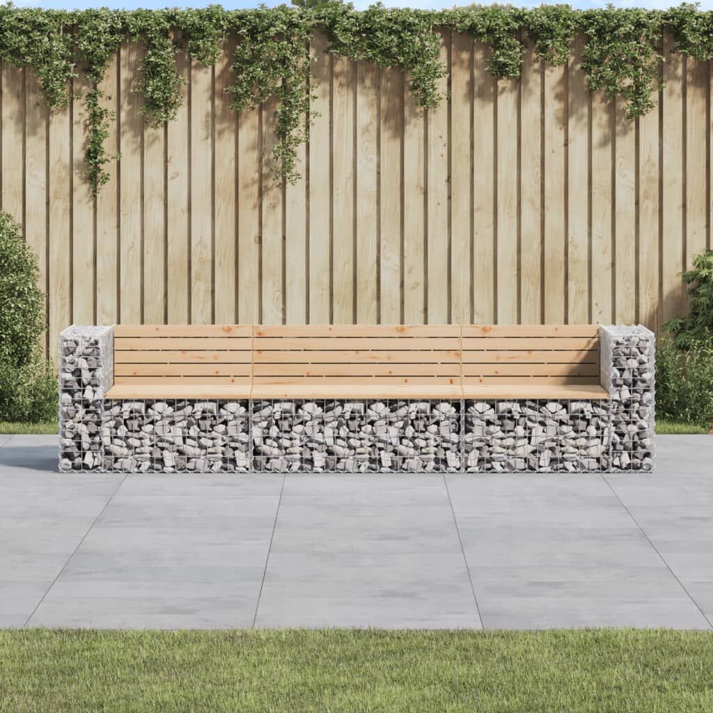 Create your own outdoor seating space with this garden bench! This garden bench will be a real eye-catcher in your outdoor living space. Solid pinewood: The top of the garden seat is made of solid pinewood for durability. Solid pine wood is a beautiful natural material. It has a straight grain, and the knots give the material its signature, rustic look.Sturdy and stable base: The outdoor bench features a galvanised steel gabion basket base that is designed to be filled with rocks and gravels for additional beauty. The mesh grid of gabion basket is welded with transverse and longitudinal wires at every intersection for extra stability.Compact design: The garden bench seat is perfect for a limited space thanks to its narrow and compact design.Wide range of uses: The park bench is suitable for gardens, backyards, patio spaces, secret corner locations and more. Good to know:This product is assembled by 2 garden benches (corner) and a garden bench (middle).