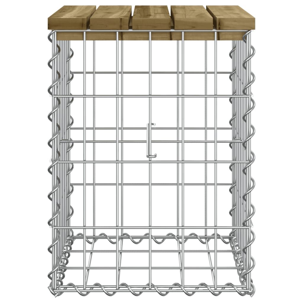 Create your own outdoor seating space with this garden bench! This garden bench will be a real eye-catcher in your outdoor living space. Impregnated wood: This top of the garden seat is made of vacuum pressure impregnated pinewood for durability. Solid pine wood is a beautiful natural material. It has a straight grain, and the knots give the material its signature, rustic look. Impregnation is a preservation process that is carried out by using autoclaves. The pressure-treatment increases resistance to decay and weather.Sturdy and stable base: This outdoor bench features a galvanised steel gabion basket base that is designed to be filled with rocks and gravels for additional beauty. The mesh grid of gabion basket is welded with transverse and longitudinal wires at every intersection for extra stability.Compact design: This garden bench seat is perfect for a limited space thanks to its narrow and compact design.Wide range of uses: This park bench is suitable for gardens, backyards, patio spaces, secret corner locations and more. Good to know:To make sure your outdoor furniture stays beautiful, we recommend protecting it with a waterproof cover.
