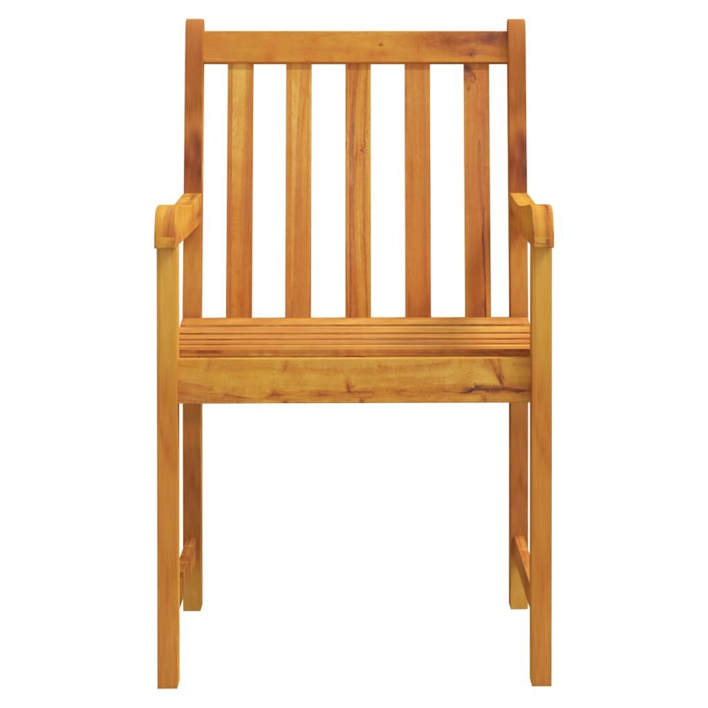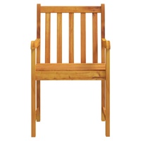 These classic wooden garden chairs provide a perfect place for you to relax and enjoy the sunshine in your outdoor living space. These armchairs, made of solid acacia wood, are weather-resistant, highly durable and suitable for outdoor use. The oil-finished surface makes them easy to clean with a damp cloth. The armrests and backrests offer great support and also add to the seats' seating comfort. Note: In order to extend the life of your outdoor furniture, we recommend you to clean it regularly and do not leave it outdoors without protection unnecessarily.Clean: Use a mild soap solution.Storing: If possible, store in a cool, dry place indoors. If the product is stored outdoors, protect it with a waterproof cover. Wipe and dry the excess water or snow from flat surfaces after a rain or snowfall. Allow sufficient air circulation to avoid moisture-related damage.