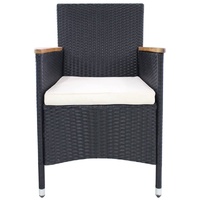This set of 2 rattan garden chairs will make a great addition to your outdoor living space. Its understated style will add a modern touch to your patio or garden. The tightly woven rattan structure produces a smooth and glossy finish, which makes these chairs not only attractive but also comfortable. Made of waterproof PE rattan, the garden chairs are lightweight and easy to clean. The powder-coated steel frames and the aluminium feet make the chairs strong and sturdy. The armrests are made of weather-resistant tropical hardwood acacia, which is weather-resistant. The removable and washable thick cushions add to the seating comfort. Delivery includes 2 PE rattan chairs with acacia wood armrests and 2 removable seat cushions. Note: We recommend covering the set in the rain, snow, and frost.