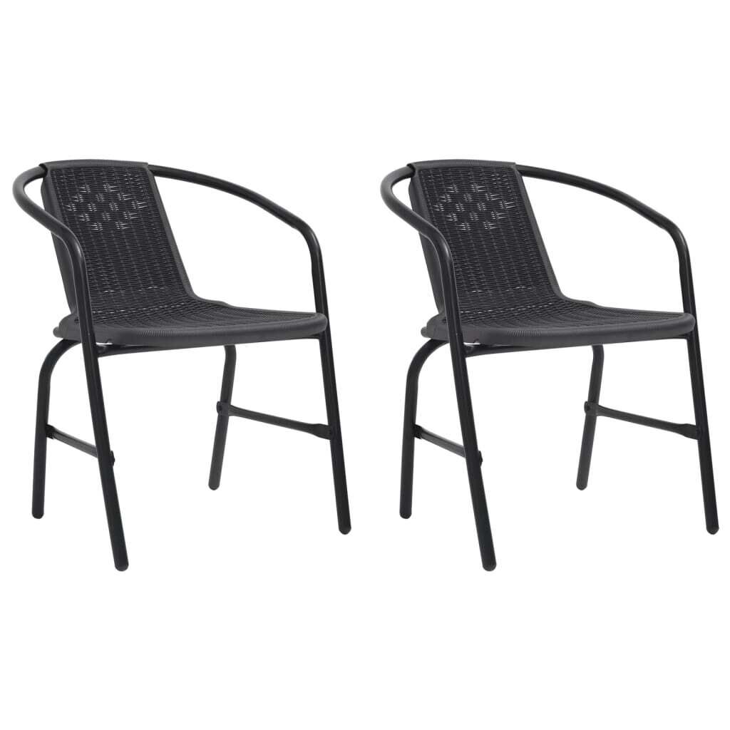 $134.41This garden chair set with rattan look, featuring an elegant and contemporary design, is an eye-catching addition to your outdoor living space. Thanks to the steel frame, the outdoor chairs are stable and sturdy. The plastic rattan seats add to seating comfort. Additionally, the armchairs are stackable to save space when not in use. Note: In order to extend the life of your outdoor furniture, we recommend you to clean it regularly and do not leave it outdoors without protection unnecessarily.Clean: Use a mild soap solutionStoring: If possible, store in a cool, dry place indoors. If the product is stored outdoors, protect it with a waterproof cover. Wipe and dry the excess water or snow from flat surfaces after a rain or snowfall. Allow sufficient air circulation to avoid moisture-related damage.