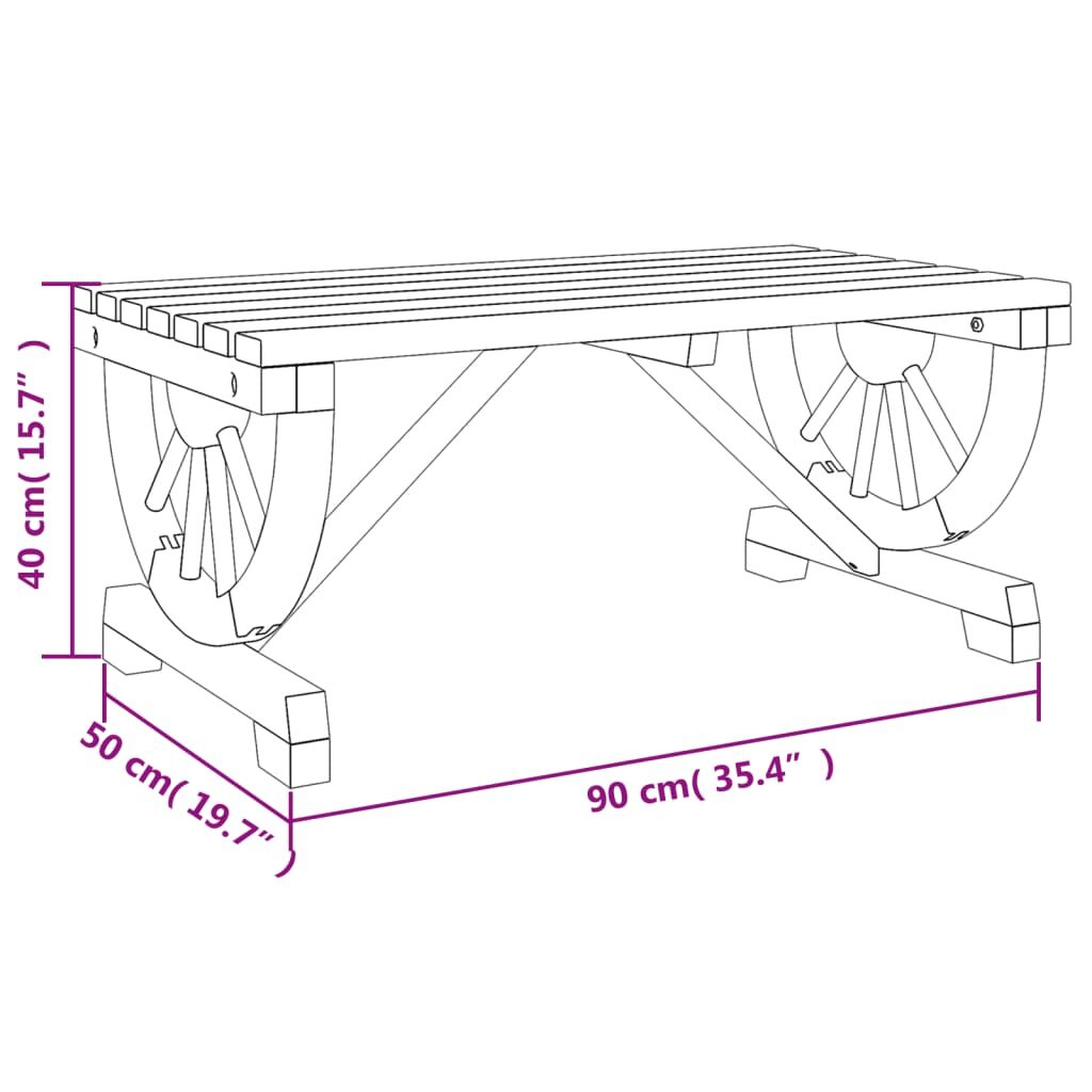 Gather around this wooden garden coffee table to enjoy a cup of coffee or have a chat with your family and friends in the garden, backyard, or on the patio! Solid fir wood: Solid fir wood is a beautiful and durable material that maintains its integrity even when exposed to moisture. It does not dry out or warp, making it a reliable choice.Practical table: The garden table is perfect for placing your drinks, food and other decorative items.Attractive design: The outdoor table features a wagon wheel design that offers an eye-catching display from every angle. Good to know:To make sure your outdoor furniture stays beautiful, we recommend protecting it with a waterproof cover.