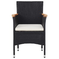 Add a hint of modern style with our poly rattan chair set. Capable of completing an outdoor dining set or standing out on their own, this chair set will make a statement in any setting. Sturdy steel frame wrapped with weather resistant hand woven PE rattan, this chair set is rust and mildew proof, which can provide years of quality relaxation. Designed with curved backrest and armrest, this set has a more ergonomic shape for maximum comfort. The armrests are decorated with acacia wood, which brings a touch of rustic charm. Cushions are included for added support and the zipped cover is removable for easy washing. Delivery includes 2 chairs.
