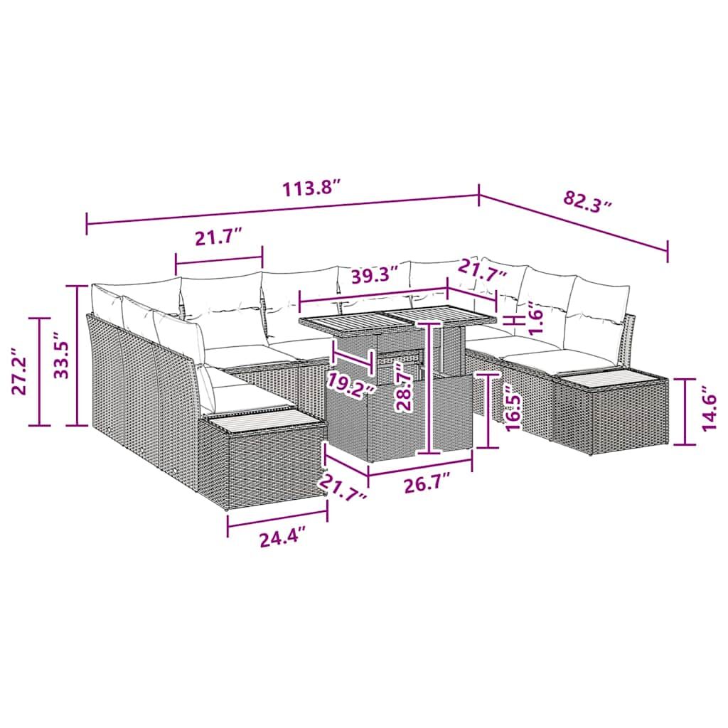 This Poly Rattan Garden Dining Set is all about modern simplicity and functionality, ideal for lifting any outdoor area. With clean lines and a sleek, minimalist design, this set provides a comfy dining or relaxation spot for your garden or terrace. Blending poly rattan and solid acacia wood, the set strikes a great balance between strength and elegance, promising a delightful outdoor experience. Robust Materials: Made from poly rattan, powder-coated steel, and acacia wood, this garden dining set is designed for durability and longevity. The UV-resistant poly rattan ensures it stands up to harsh sunlight, while the powder-coated steel provides a sturdy, -resistant frame. Comfortable for social gatherings, it serves both style and practical needs. Versatile Components: The set includes two side sofas, two corner seats, a centre seat, and a garden table, giving you plenty of seating and dining options. Each piece has storage for cushions and essentials. The modular design lets you change it up to fit your layout or adapt to guests, making customization a breeze for every occasion. Adjustable Features: With adjustable feet, this dining set handles uneven surfaces, boosting stability in your outdoor area. The modular setup also allows for flexible arrangements, while the square armrests bring defined lines to the modern aesthetic. This thoughtful mix ensures comfort whether you're entertaining or just chilling out. Outdoor-Specific: Designed for seasonal use, the set thrives in summer and spring, perfectly suiting gardens and terraces. Its UV resistance keeps its vibrant appearance, and it's great for outdoor parties and meals. Care Instructions: To keep it looking sharp, use a cover when it's not in use to protect against the elements. Although assembly isn't needed, cleaning is a cinch with dry methods, avoiding harsh chemicals that could wear out the elegant materials over time.