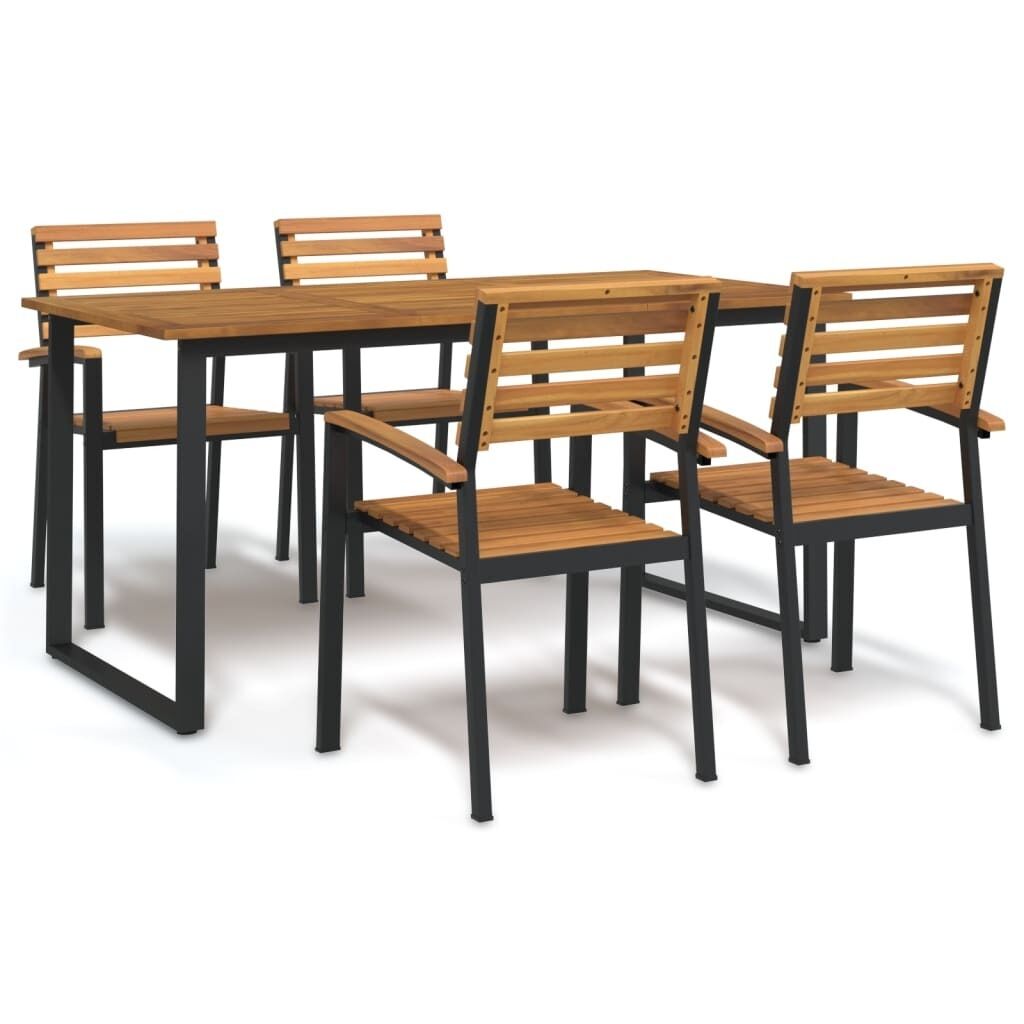 $984.17With this wooden garden dining set, you can enjoy a nice meal outdoors with your family and friends! Solid acacia wood: Solid acacia wood is a beautiful natural material. Acacia wood is a tropical hardwood, which is dense, sturdy, and durable. Metal legs: The powder-coated metal legs of the garden furniture set ensure sturdiness and stability. Sturdy tabletop: The sturdy tabletop of the dining table is perfect for placing meals, drinks, vases, fruit bowls, or other decorative items. Comfortable experience: The backrest and armrests of the garden dining chair provide excellent support for optimum comfort. Note: To make sure your outdoor furniture stays beautiful, we recommend protecting it with a waterproof cover.