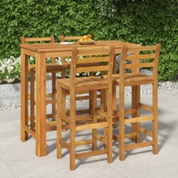 $287.63This wooden garden dining set, with an elegant and contemporary design, will be a great choice for dining or relaxing in the garden. Solid acacia wood: Solid acacia wood is a beautiful natural material. Acacia wood is a tropical hardwood, which is dense, sturdy, and durable. Made of solid acacia wood, this patio furniture is suitable for indoor and outdoor use. Sturdy tabletop: This dinner table provides you with a sturdy tabletop. You can place your snacks, drinks and any of your favourite decorations. Comfortable seating experience: The footrests provide extra seating comfort.Easy-to-clean surface: The oil-finished surface makes this garden furniture set easy to clean with a damp cloth. Note:Each product comes with an assembly manual in the box for easy assembly. In order to extend the life of your outdoor furniture, we recommend you to protect it with a waterproof cover.