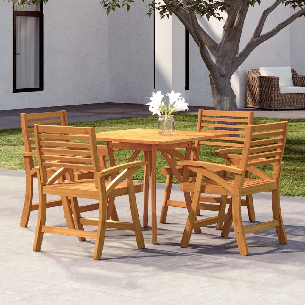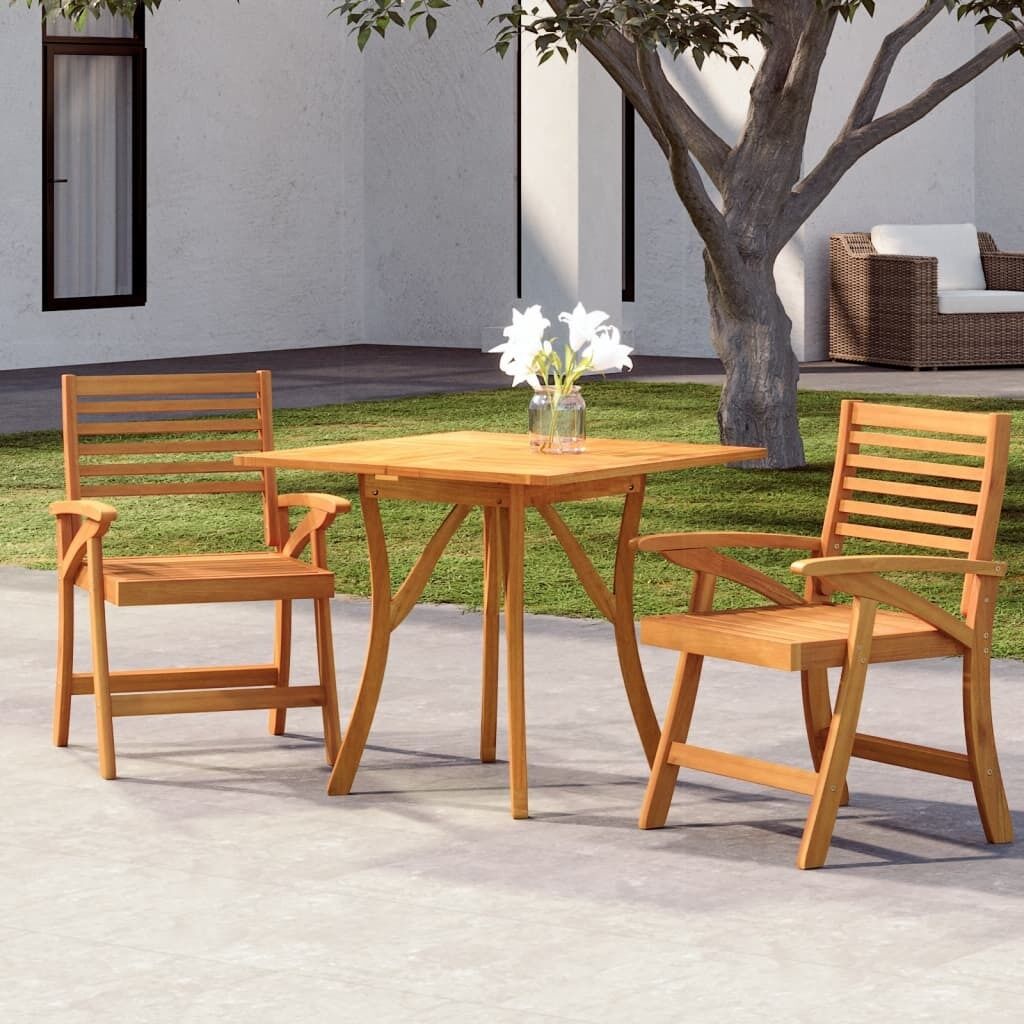 $389.15Relax and enjoy a lovely afternoon tea and meals with your family and friends with this classic wooden garden dining set! Solid acacia wood: The dining set is made of solid acacia wood. Solid acacia wood is a beautiful natural material. Acacia wood is a tropical hardwood, which is dense, sturdy, and durable.Comfortable experience: The curved back and armrests of the dining chair ensure optimum comfort and relaxation.Sturdy tabletop: The dining table features a tabletop with a slatted design, making it an excellent spot for dining and placing decorative items such as vases and potted plants.Elegant design: The curved legs of the garden dining table and garden dining chairs add to their elegant design.Easy-to-clean surface: The oil-finished surface makes the patio dining set easy to clean with a damp cloth. Note:To make sure your outdoor furniture stays beautiful, we recommend protecting it with a waterproof cover.