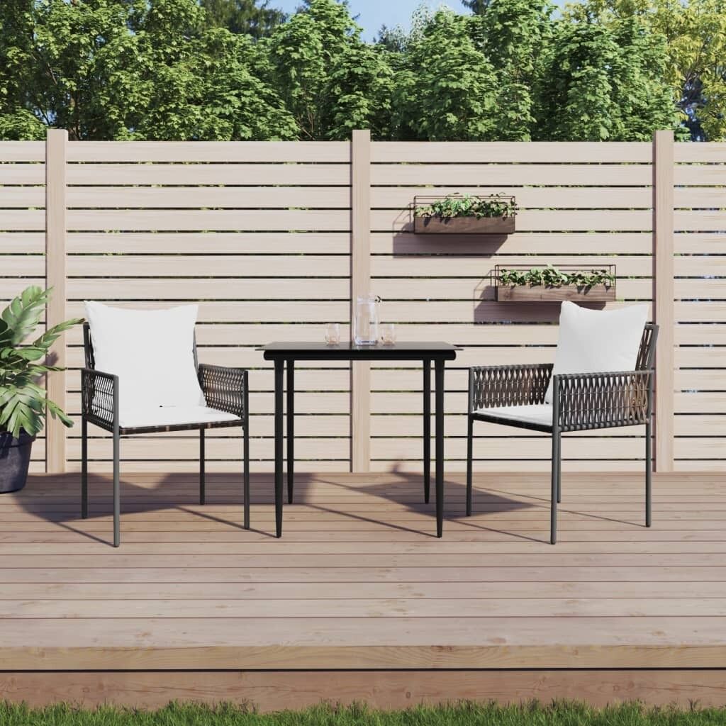 $313.01Relax and enjoy a lovely afternoon tea or any meal with your family and friends around this garden dining set! Durable material: PE rattan, also known as poly rattan, is weather resistant and easy to clean. It remains beautiful on the outside for a long period of time. It offers great quality, convenience and an aesthetic look.Sturdy and stable frame: The steel frames make the dining set sturdy and stable for daily outdoor use.Practical tabletop: The smooth tabletop of the dining table is made of tempered glass which is easy to clean with a damp cloth. Additionally, it offers excellent support for holding your meals, drinks, and other decorative items.Comfortable seating: The dining chair is designed with a backrest and armrests to offer you a comfortable seating experience. Also, the thickly padded cushions provide ultimate comfort for your sitting time. Note:To make sure your outdoor furniture stays beautiful, we recommend protecting it with a waterproof cover.