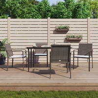 $297.97This garden dining set, combining both style and function, is surely meant to be the centrepiece of your garden, patio, and any other living space. Weather-resistant material: PE rattan, also known as poly rattan, is weather resistant and easy to clean. It remains beautiful on the outside for a long period of time. It offers great quality, convenience and an aesthetic look.Sturdy and stable frame: The steel frames make the dining set sturdy and stable for daily outdoor use.Practical tabletop: The smooth tabletop of the dining table is made of tempered glass which is easy to clean with a damp cloth. Additionally, it offers excellent support for holding your meals, drinks, and other decorative items.Comfortable seating: The dining chair is designed with armrests to offer you a comfortable seating experience. The thickly padded seat cushion provides ultimate comfort during your sitting time. Note:To make sure your outdoor furniture stays beautiful, we recommend protecting it with a waterproof cover.
