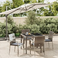 $281.05This trendy garden dining set, featuring an elegant and contemporary design, is a great choice for dining or relaxing in your garden. Weather-resistant material: PE rattan, also known as poly rattan, is weather resistant and easy to clean. It remains beautiful on the outside for a long period of time. It offers great quality, convenience and an aesthetic look.Sturdy frame: The powder-coated steel frames make the outdoor dining set sturdy and stable for daily outdoor use.Practical tabletop: The smooth tabletop of the garden table is made of tempered glass which is easy to clean with a damp cloth. Additionally, the sturdy tabletop is perfect for placing meals, drinks, and other decorative items.Modular design: The patio dining set is flexible and easy to move around, so you can combine it with other modular segments in the webshop to create your own personal garden dining set configurations!Comfortable seat experience: The backrest adds extra seating comfort for the garden chair. Also, the thickly padded cushions provide comfort for your sitting time. Good to know:To make assembly as easy as possible, each product is delivered with a manual. Note:To make sure your outdoor furniture stays beautiful, we recommend protecting it with a waterproof cover.