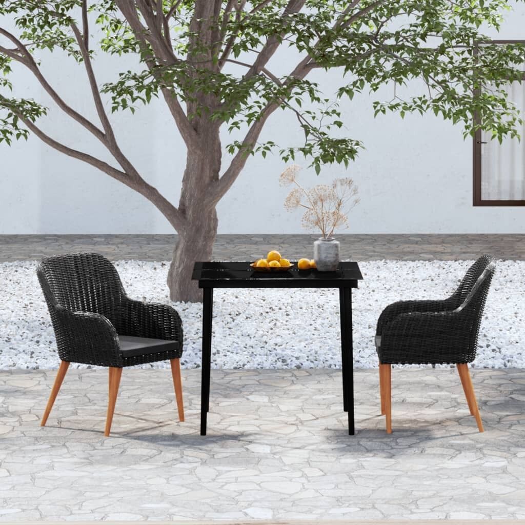 $839.41This stylish garden dining set is meant to be the focal point of your garden or patio! It is a great choice for al fresco dining or relaxing in the outdoor space! The powder-coated steel frames make the table and chairs sturdy and stable for daily outdoor use. Thanks to the water-resistant PE rattan, the chairs are easy to clean and hard-wearing. The ergonomically-designed shape and thickly-padded, removable cushions with foam filling provide the ultimate seating comfort. The low-maintenance polyester cushion covers can be easily removed and washed. Additionally, the smooth glass tabletop is easy to clean with a damp cloth and perfect for placing meals, drinks and other decorative items. Note: In order to extend the life of your outdoor furniture, we recommend you to clean it regularly and do not leave it outdoors without protection unnecessarily.Clean: Use a mild soap solution.Storing: If possible, store in a cool, dry place indoors. If the product is stored outdoors, protect it with a waterproof cover. Wipe and dry the excess water or snow from flat surfaces after a rain or snowfall. Allow sufficient air circulation to avoid moisture-related damage.