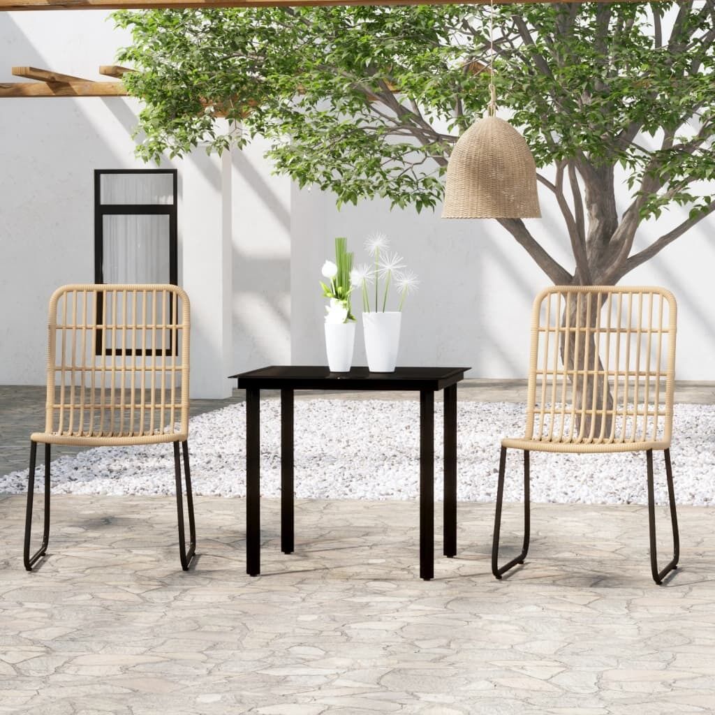 $374.11This exquisitely designed garden dining set is meant to be the focal point of your garden or patio! The steel frame makes the table and chairs sturdy and stable. As the set is also lightweight, all items are easy to move around. What’s more, the smooth glass tabletop is easy to clean with a damp cloth and perfect for placing meals, drinks and other decorative items. The garden chairs are made of PE rattan, resistant to poor weather and UV rays. Additionally, the curved backrests also add extra seating comfort for the chairs. Note: In order to extend the life of your outdoor furniture, we recommend you to clean it regularly and do not leave it outdoors without protection unnecessarily. Clean: Use a mild soap solution. Storing: If possible, store in a cool, dry place indoors. If the product is stored outdoors, protect it with a waterproof cover. Wipe and dry the excess water or snow from flat surfaces after a rain or snowfall. Allow sufficient air circulation to avoid moisture-related damage.