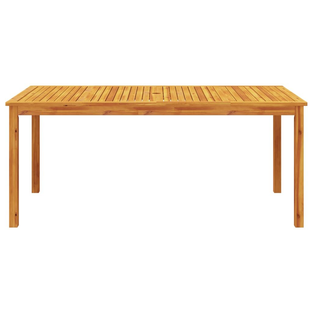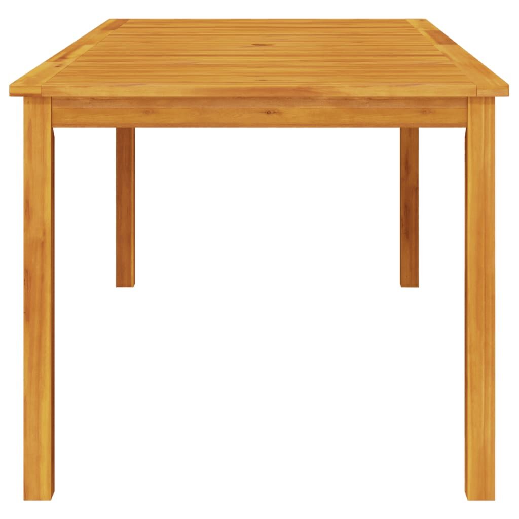 Enjoy a nice meal outdoors with your family and friends around our dining table! The wooden table will bring a touch of rustic charm to your patio, garden or terrace. Solid acacia wood: The garden table is made of solid acacia wood. Solid acacia wood is a beautiful natural material. Acacia wood has beautiful wood grains make every piece of furniture unique and slightly different from each other.Stable and easy-to-clean tabletop: This garden table has an acacia wood top that is sturdy, durable, and easy to clean with a damp cloth.Wide application: This table's top provides more space for placing items, suitable for mobile phones, books, lamps, etc. Good to know:To make sure your outdoor furniture stays beautiful, we recommend protecting it with a waterproof cover.
