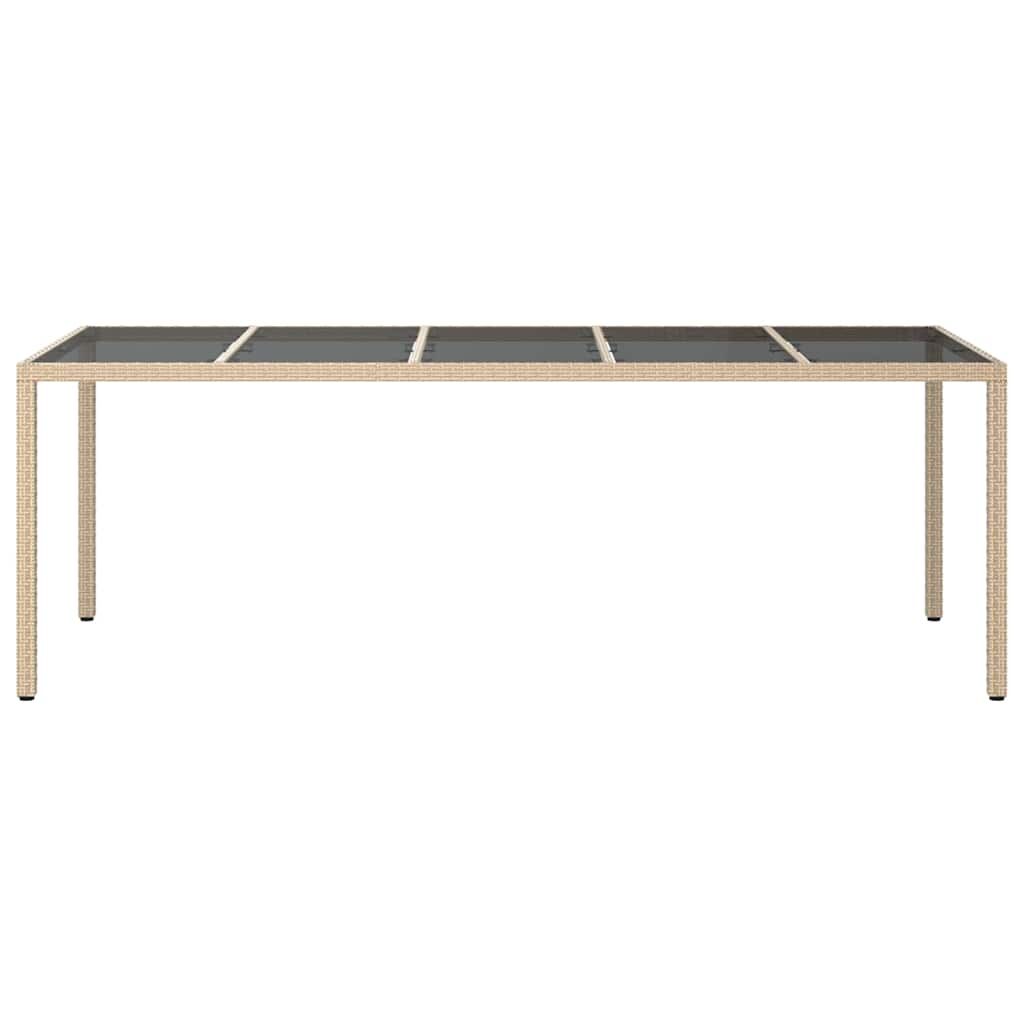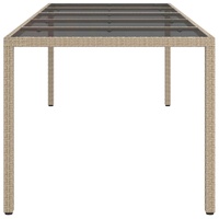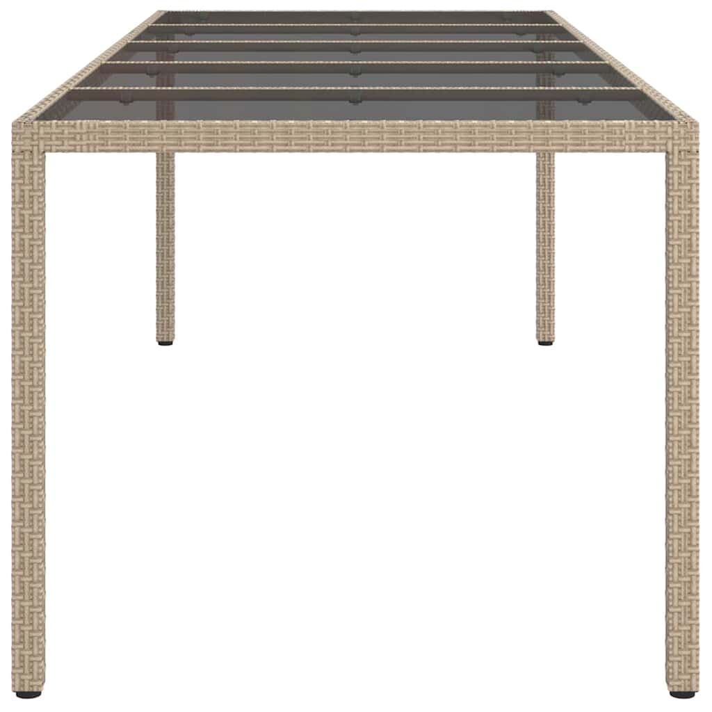 Transform your outdoor space with this Garden Dining Table, perfect for garden meet-ups and terrace meals. Its modern rectangular shape and clear style blend well with any outdoor decor, offering a chic yet practical centerpiece for outdoor dining. It’s designed with simplicity and function in mind, making it ideal for garden lovers looking for a classy option. Solid Build: Crafted from durable poly rattan, sturdy steel, and tempered glass. These top-quality materials are weather-resistant, making this table a reliable choice all year round. Smart Look: Its large rectangular tabletop easily serves meals for friends and family. The sleek surface adds a modern vibe. Weatherproof Features: With its water and UV-resistant nature, this table stands up to rain and sun, keeping its looks and durability intact. Functional Build: Equipped with a solid powder-coated steel frame for extra strength. The square legs provide stability while enhancing the modern style. Easy Care: Easy to maintain—just wipe it down with a damp cloth and avoid harsh cleaners. For added protection, it's best to cover it when not in use.