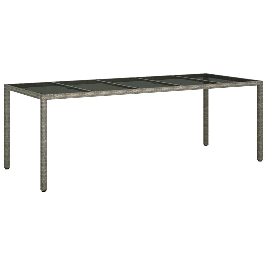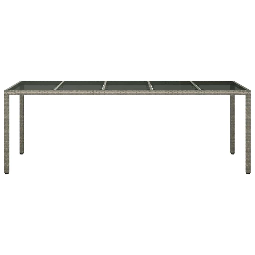 Transform your outdoor space with this Garden Dining Table, perfect for garden meet-ups and terrace meals. Its modern rectangular shape and clear style blend well with any outdoor decor, offering a chic yet practical centerpiece for outdoor dining. It’s designed with simplicity and function in mind, making it ideal for garden lovers looking for a classy option. Solid Build: Crafted from durable poly rattan, sturdy steel, and tempered glass. These top-quality materials are weather-resistant, making this table a reliable choice all year round. Smart Look: Its large rectangular tabletop easily serves meals for friends and family. The sleek surface adds a modern vibe. Weatherproof Features: With its water and UV-resistant nature, this table stands up to rain and sun, keeping its looks and durability intact. Functional Build: Equipped with a solid powder-coated steel frame for extra strength. The square legs provide stability while enhancing the modern style. Easy Care: Easy to maintain—just wipe it down with a damp cloth and avoid harsh cleaners. For added protection, it's best to cover it when not in use.
