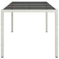 This smart Modern Garden Dining Table is spot on for style and practicality, making outdoor dining a breeze. With its sleek lines and big rectangular shape, it’s a true standout in any garden, patio, or terrace. It’s just right for those special get-togethers, fitting in well with all sorts of décor and giving off a stylish vibe whether you're keeping it casual or going all out. Top-Notch Materials: Made from poly rattan, which is UV resistant and water-repellent, this table keeps its good looks no matter the weather. The powder-coated steel frame adds an extra layer of protection, making sure it lasts for ages without chipping or peeling, so it’s seriously solid. Solid Build: Thanks to its sturdy steel frame, this table is built tough. The tempered glass surface adds a classy touch and is a breeze to wipe clean. Everything fits together nicely, mixing high style with practicality. Smart Design: This patio table is made for outdoor fun with weather-resistant materials. The rectangular shape ensures there’s ample room for everyone while looking effortlessly chic. The sleek pattern and smooth finish enhance its modern vibe, perfect for any outdoor spot. Multi-purpose Uses: Whether for garden dining, entertaining on the terrace, or just chilling on the patio, this garden table is perfect for all kinds of outdoor fun. Its stylish look fits right in at home or in more posh spots like cafés. Easy Care: Keep it looking fab by simply wiping it down with a damp cloth and using a cover when not in use. Stay clear of harsh chemicals to keep its lovely finish intact, and regular care will keep it looking great and working well for ages.