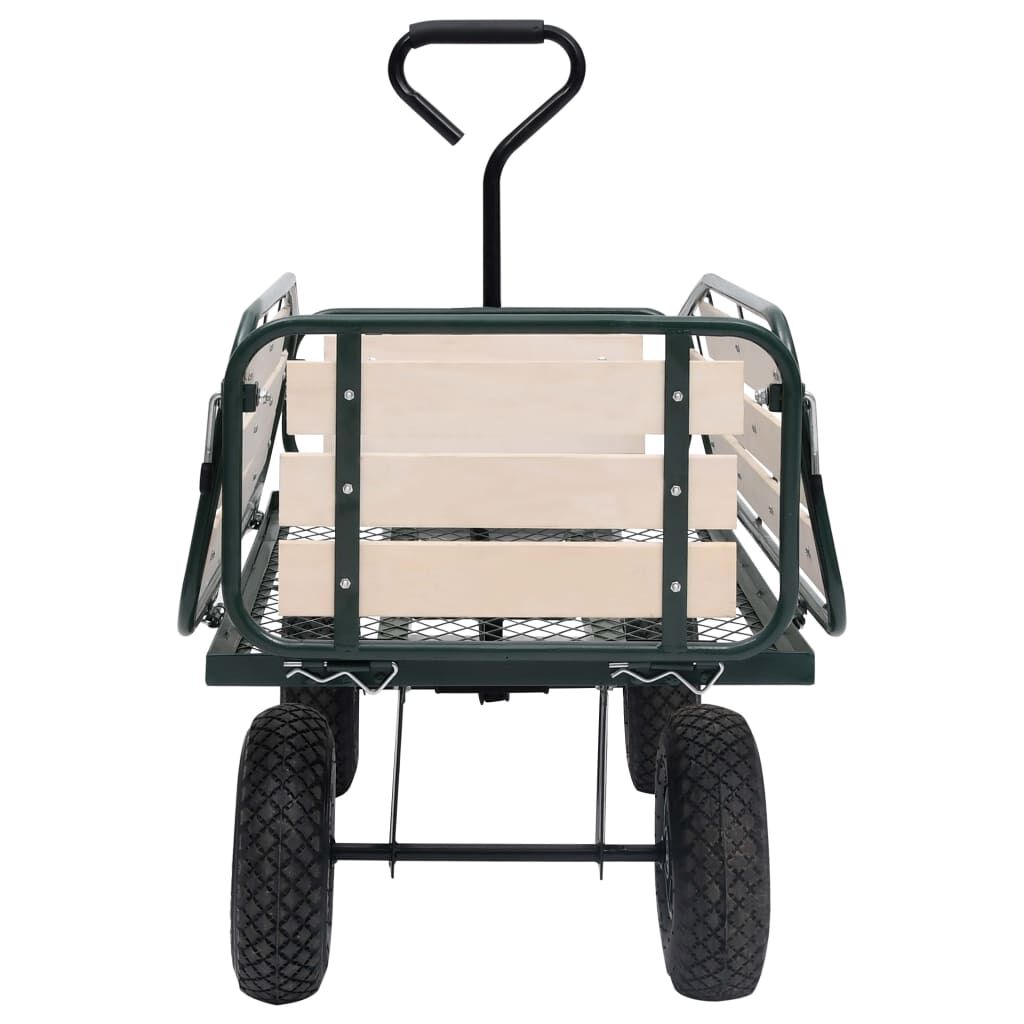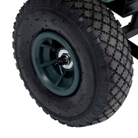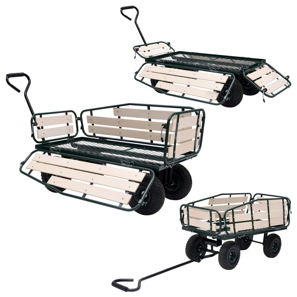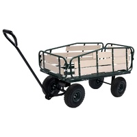 This hand trolley, featuring durable and robust metal construction, is perfect for an array of gardening tasks. This garden cart is made of heavy-duty metal, exceedingly stable and durable. With a maximum load capacity of 250 kg, the hand truck can easily transport flowers, leaves, logs and other stuff. The side panels can be opened with quick-release fasteners for easy loading and unloading. Additionally, the large heavy-duty pneumatic wheels allow you to effortless pull the trolley on uneven terrain surfaces. The padded handle ensures a firm grip as well. Note: That it is not suitable for transporting children.