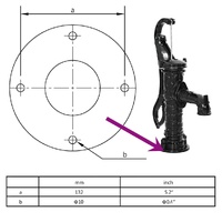 This water pump is totally hand operated, and very easy to use. By moving the handle up and down, water is pumped from the ground and will flow out from the tap. This hand pump can be easily installed. With a cast iron construction, it is robust and highly durable. The pump itself has a 38 mm (1 1/2") female fitting at the bottom, and a PVC pipe or a stainless steel pipe needs to be connected to the fitting (either through a male threaded fitting or with a hose connector) to divert water into the pump. Please note that the delivery includes a pump only; pipes and a stand are not included. Note: We recommend that empty the pump during the winter lest it should freeze inside.