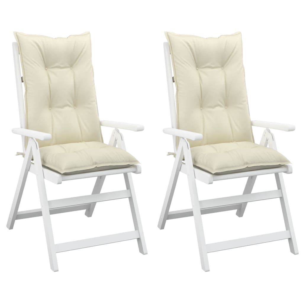 Give your outdoor living space a fresh look with these comfortable highback chair cushions in an instant! Durable material: Polyester is a synthetic material known for its UV resistance and its tensile strength. Polyester is water-resistant, which makes it the perfect choice for humid or rainy conditions and is also easy to clean.Soft filling: The outdoor cushion is stuffed with PP hollow fibre for ultra-soft and optimal seating comfort. The chair pillow regains its original shape after every use.Wide application: The cushion is not only suitable for outdoor use such as garden and patio furniture, but can also be used indoors as a family chair pad and office chair pad. Also, it is a beautiful decoration to give your home a fresh look.Non-slip design: Thoughtfully designed ropes and elastic back strap make it easy to attach the cushion to furniture and keep it neatly and safely in place. Good to know:The product is packed under vacuum, so it requires some time to expand and recover to its original shape.